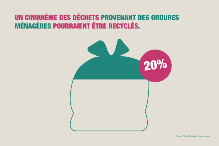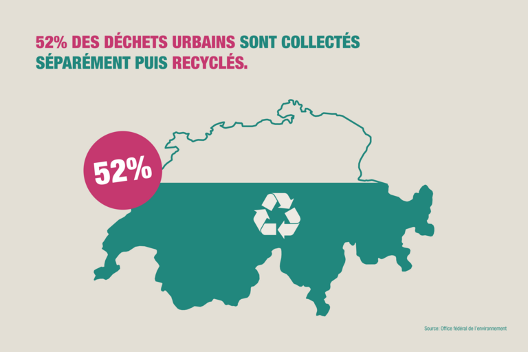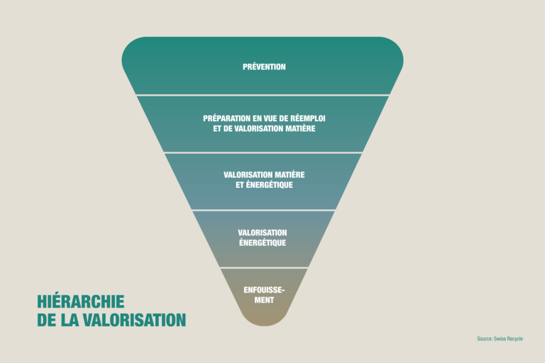 Sur toutes les ressources dont nous avons besoin en Suisse, 14,5% proviennent de matières premières secondaires. Bien que l’on puisse se réjouir que ce taux soit en augmentation, il reste un potentiel énorme à exploiter, tant au niveau de la récupération que de la réduction de consommation de ressources.