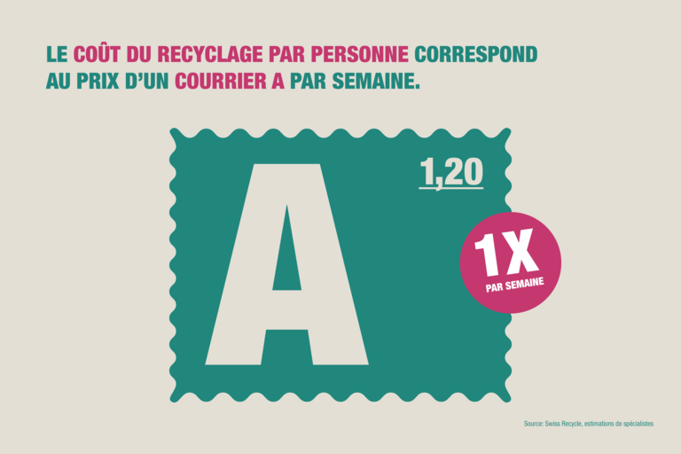Le montant des taxes de recyclage sur tous les systèmes de recyclage s’élève à environ CHF 181 millions par an. Cela correspond à un peu moins de CHF 20 par personne et par an. Le coût total de l’élimination des déchets urbains (y compris la valorisation thermique) s’élève à environ CHF 126 par habitant·e et par an.