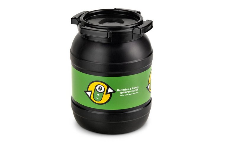 Das kleine Fass aus Kunststoff mit Schraubdeckel für das Sammeln und den Transport von gebrauchten Batterien und Akkus. Verkaufsstellen erhalten das Sammelfass kostenlos. Für freiwillige und private Sammelstellen: CHF 12.– pro Stück.