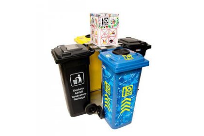greenoffice bietet Sammelbehälter im modernen Design an. Die Farben sowie Symbole können personalisiert werden. Zudem stehen 5 verschiedene Öffnungen zur Auswahl.